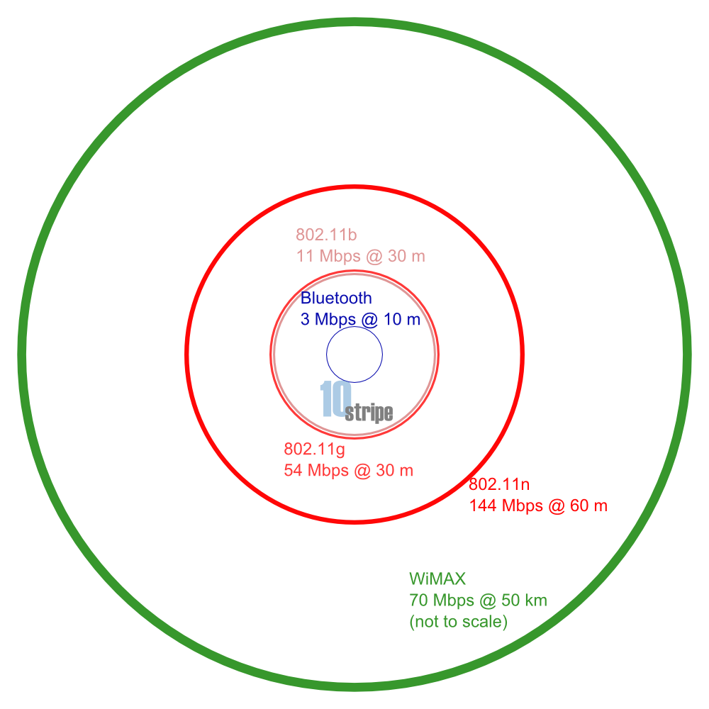 Wireless technology standards are springing up all over the place, with a broad variety of uses. This page is meant to provide a high-level comparison of some very different technologies, in the hopes that this will make clear just how different these standards really are. It is by no means a comparison of every wireless standard in existence, but covers some of the most common standards.